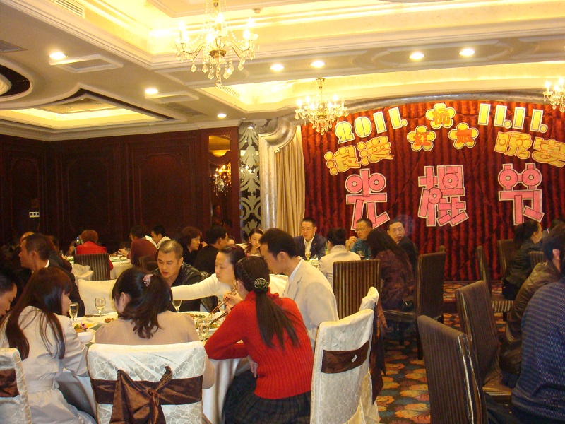 光棍節(jié)狂歡夜單身朋友聚餐座無虛席的場(chǎng)面